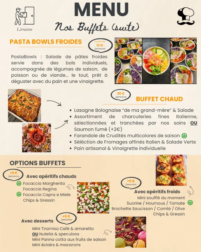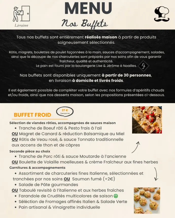 - Livraison traiteur : buffets chauds & froids